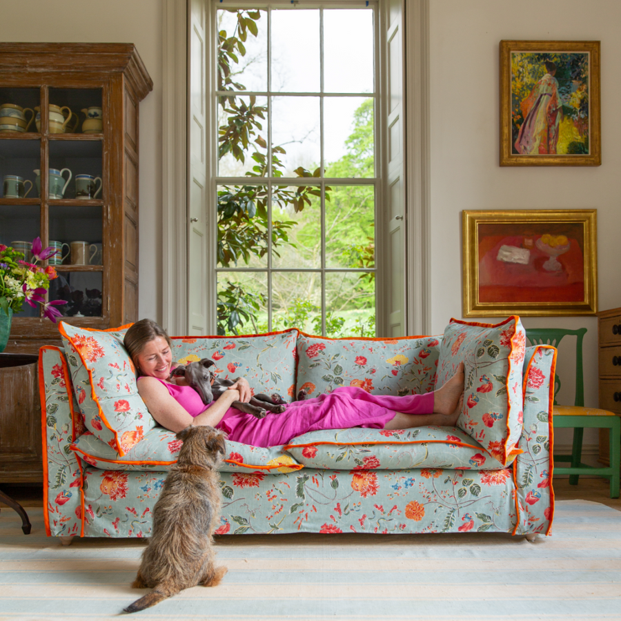 Dimensions: W 226 cm (88.97 inches), D 97 cm (38.19 inches), H 90 cm (35.43 inches) Fabric Composition: 100% GOTS Approved Organic Cotton Cushion Composition: Feather and Foam - Please read our blog section for more information regarding our cushion fills. Country of Manufacture: United Kingdom Lead Time: 10-12...