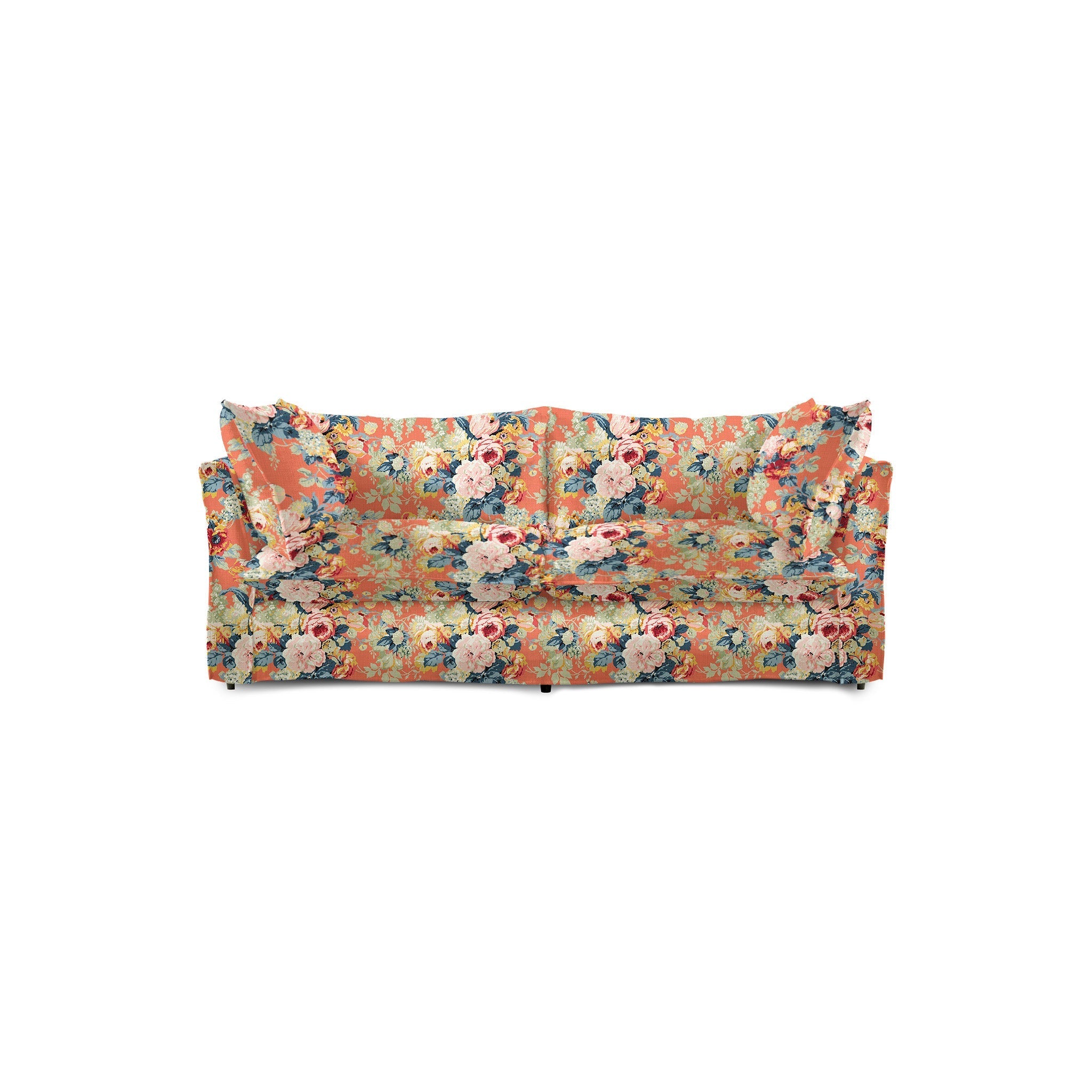 Coco 2.5 seater sofa with Knife Edge cushion in English Garden Coral Orange - Made to Order (Available for quick ship)