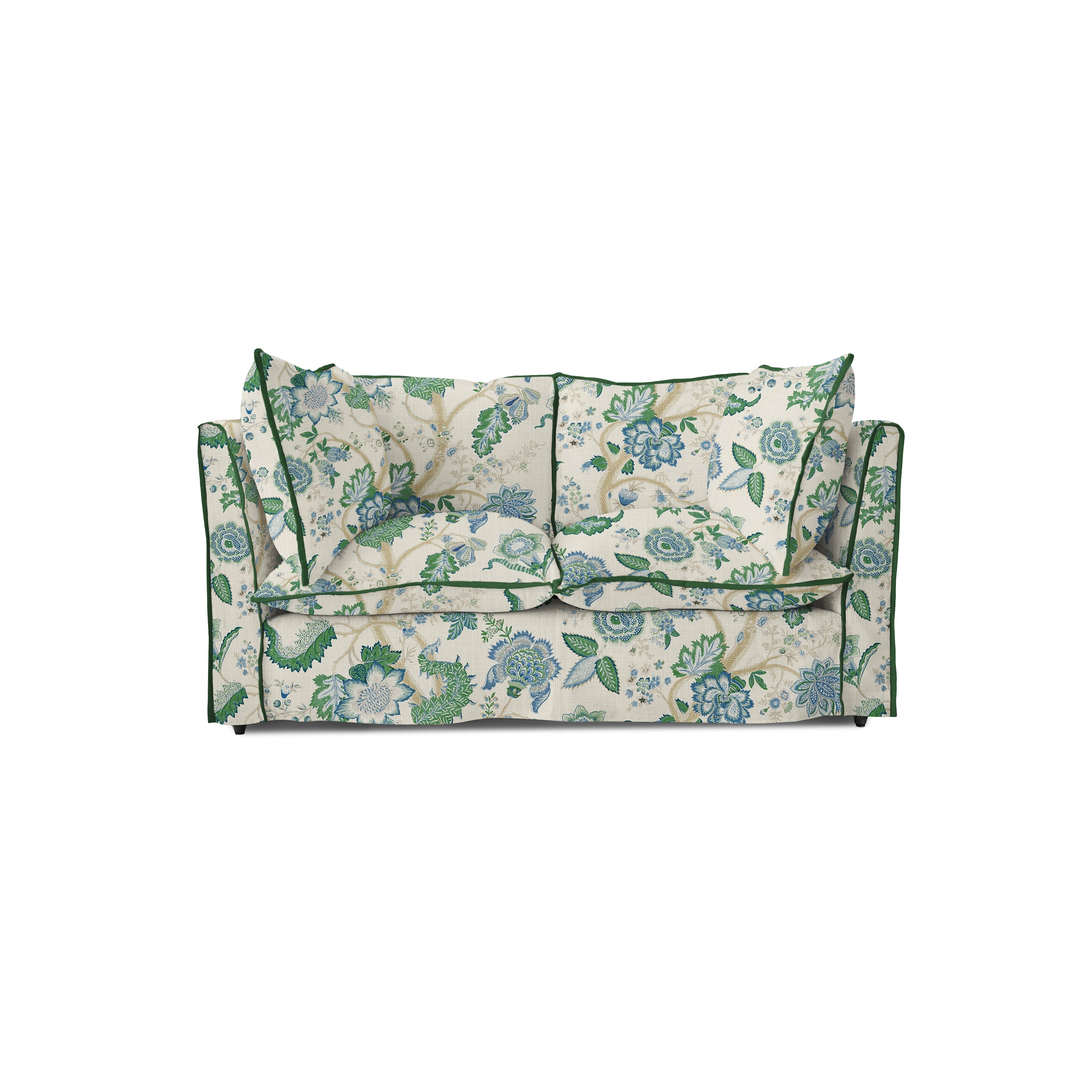 Coco 2 seater sofa with Knife Edge cushion in Kitty Blue Green with Velvet Trim - Made to order (Available for quick ship)
