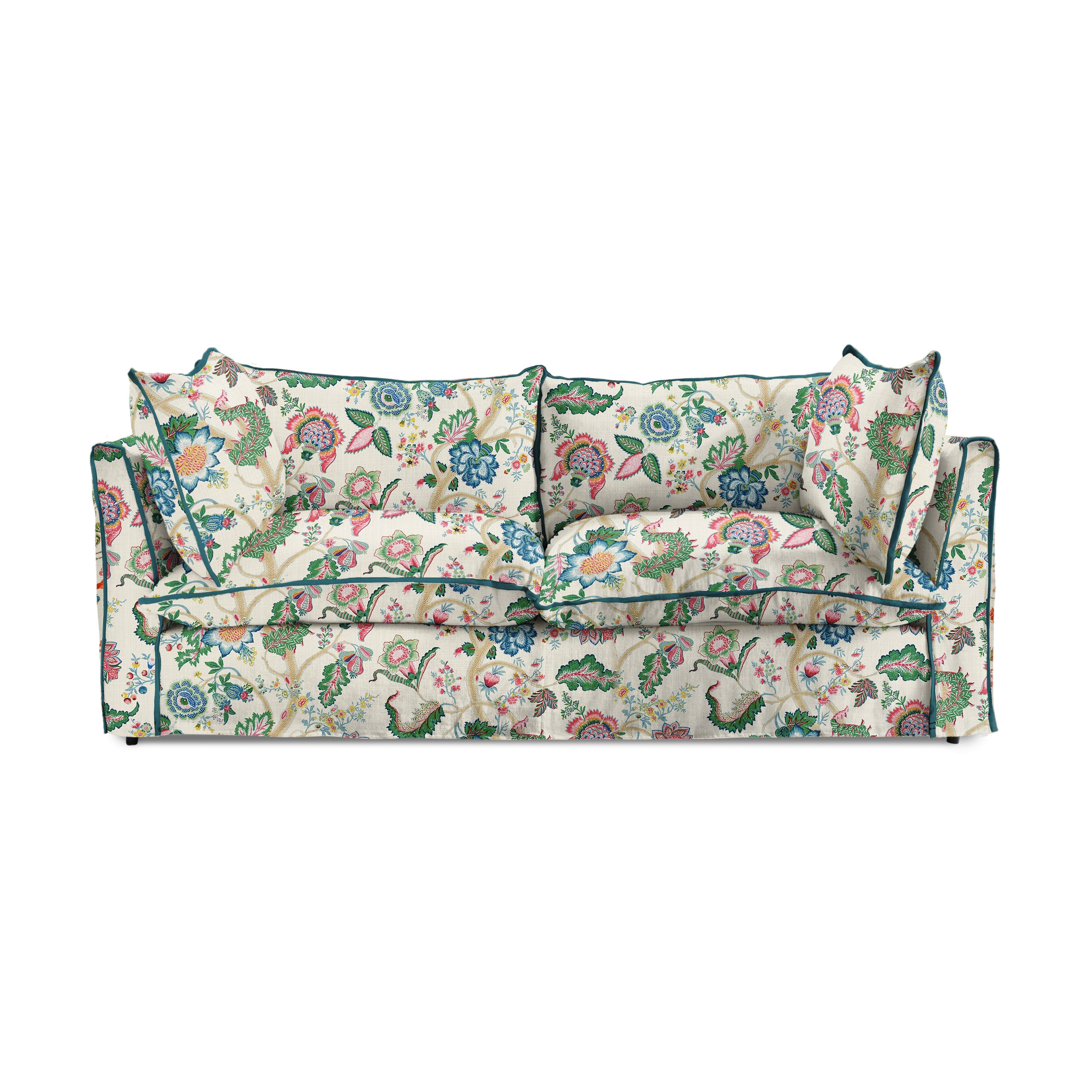 Coco 3 seater sofa with Knife Edge cushion in Kitty Spring Green with Velvet Trim - Made to Order (Available for quick ship)