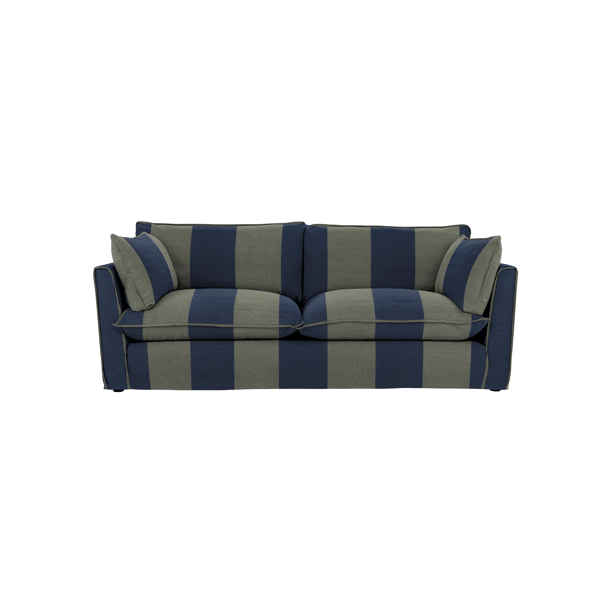 Materials: Each of these wonderful sofas are made from natural and recycled materials including: Solid Birch Hardwood frame, natural fibres, steel springs, duck feather and sustainably sourced recycled foam. The organic yarn in our striped fabric is GOTS approved.