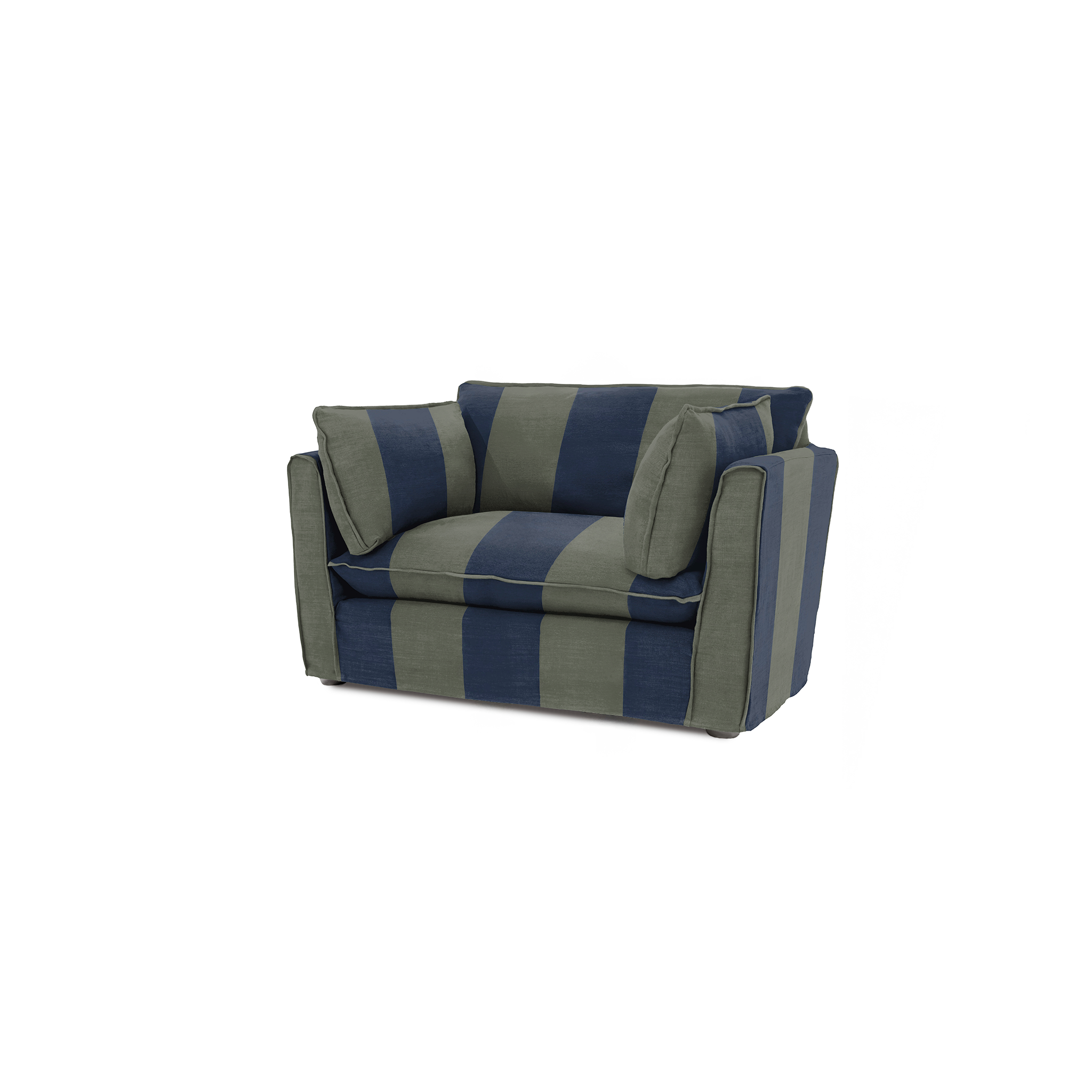 Discover the Sophie Conran Snuggler in Woodland Stripe from the Cocobella Range, epitomizing luxury and comfort. This sofa comfortably sits 1-2 people. Featuring luxurious cushions and machine-washable covers for effortless maintenance, this stylish and timeless piece is a perfect addition to any home.