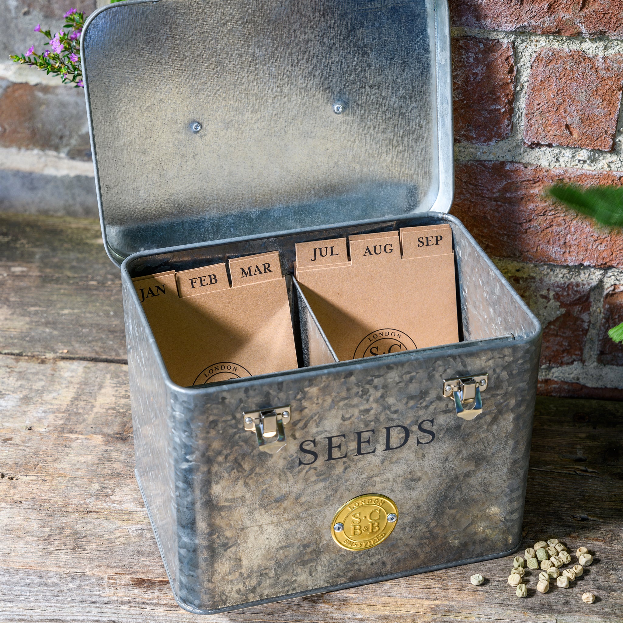 Keep your seeds beautifully stored and ready for every season with this elegantly designed seed organiser. Perfect for collecting, sorting, and protecting your seed packets, it’s as practical as it is stylish. A sturdy metal handle makes it easy to carry, while two strong clasps hold the hinged lid securely closed.