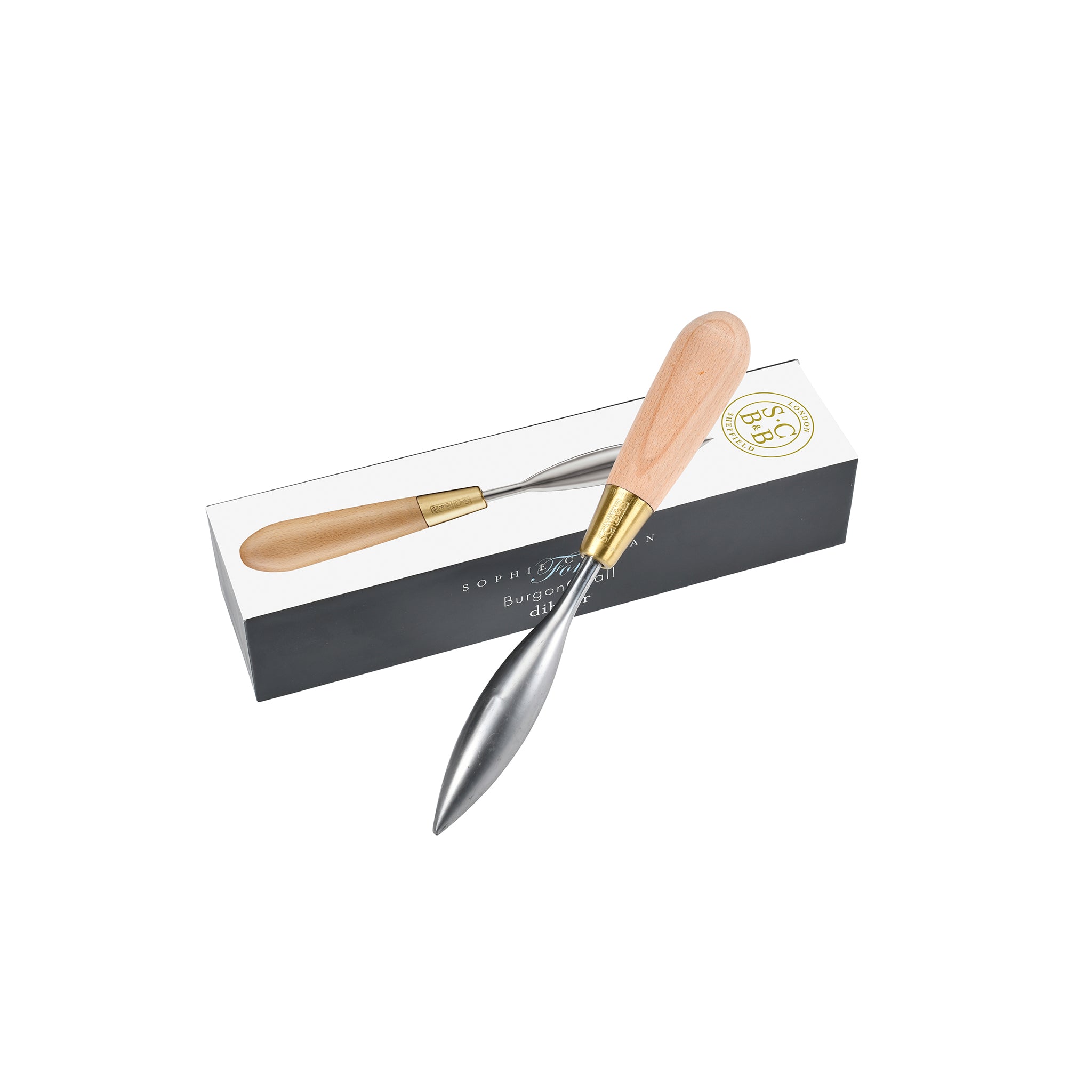 The mirror-polished stainless steel point glides smoothly through the soil and resists rust, staying bright and beautiful for years to come. The smooth, waxed FSC® beechwood handle fits comfortably in the hand, while the solid brass ferrule ensures a secure, lasting connection between handle and tool.