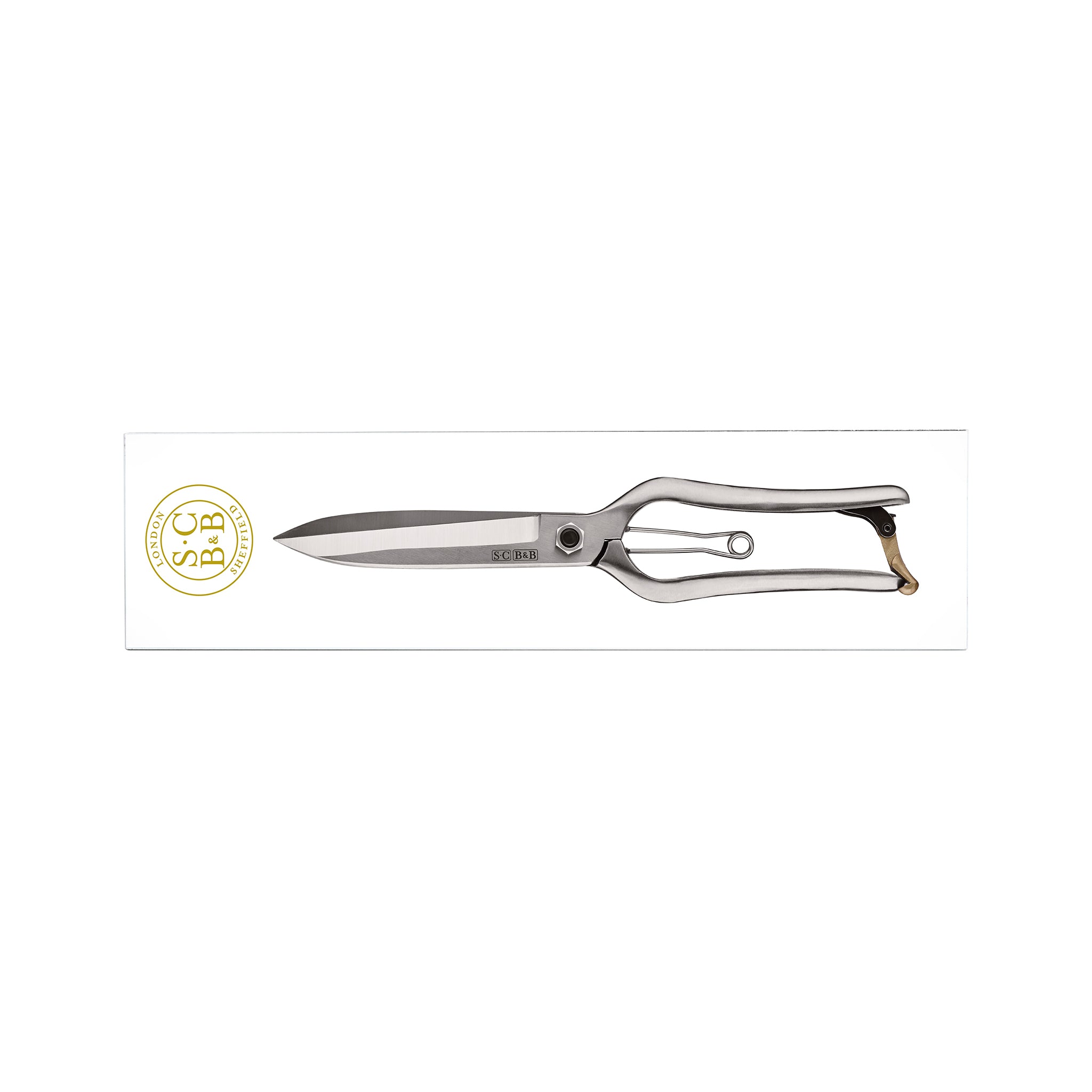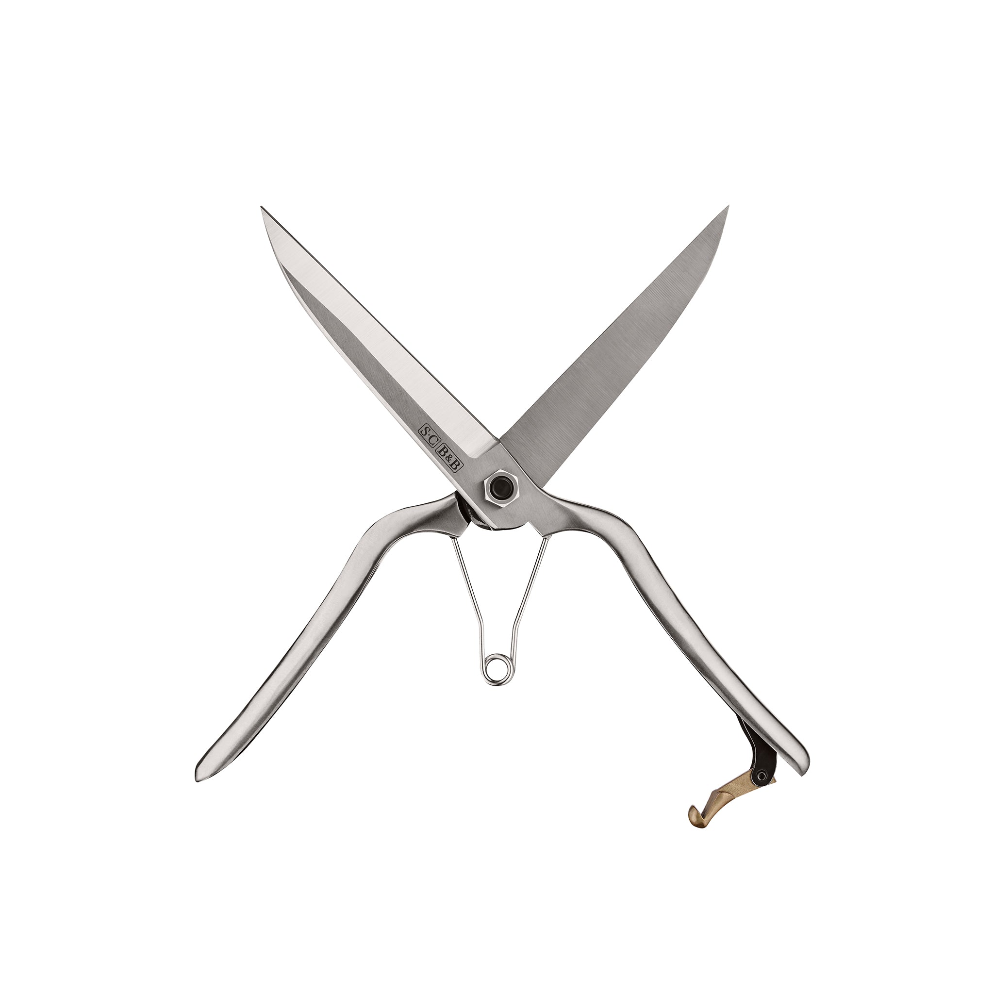 Designed for comfortable single-handed use, it’s perfectly balanced to offer both control and efficiency. Forged from a single piece of stainless steel, it combines lasting strength with natural rust resistance, while a simple brass lock keeps the blades safely closed when not in use.