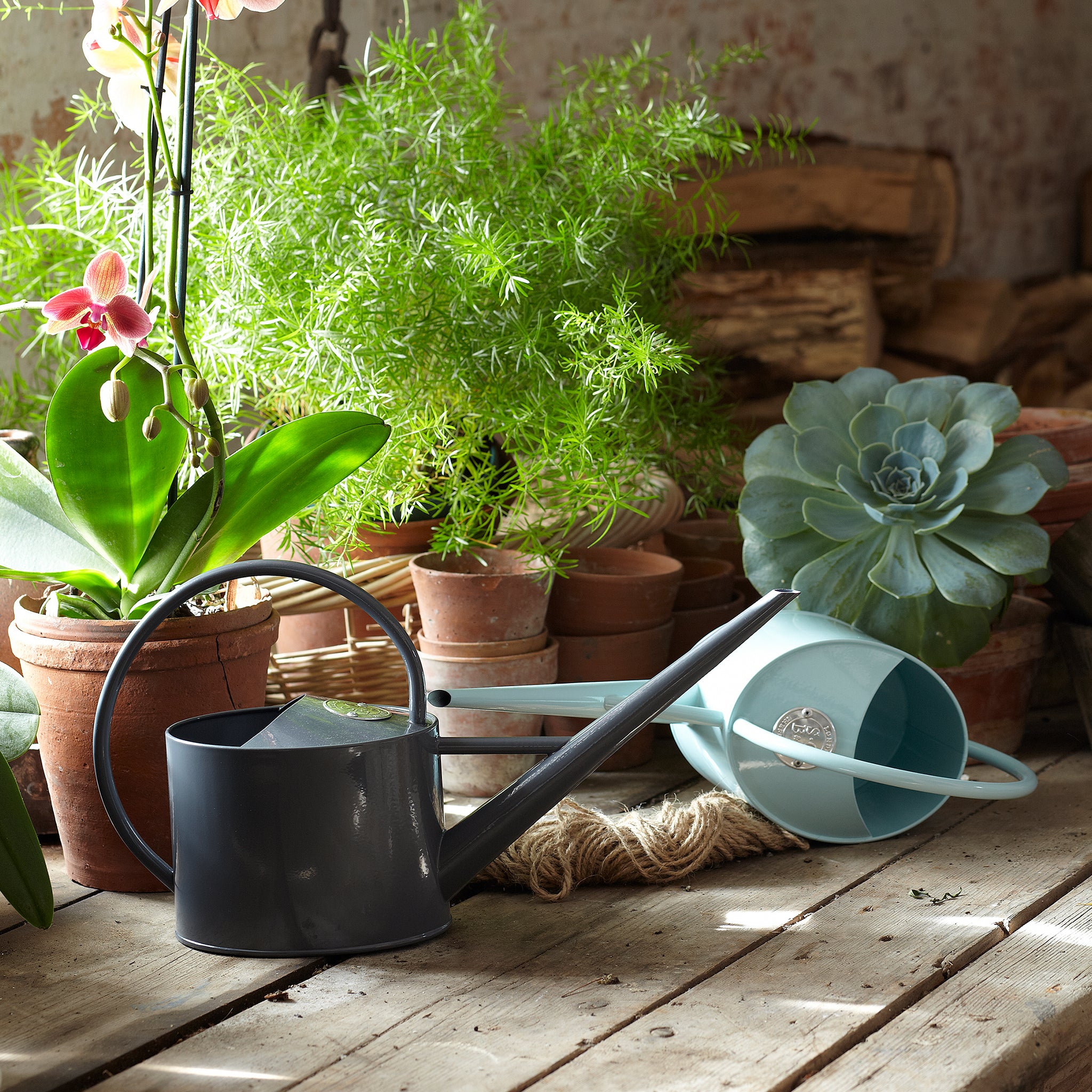 Finished in a soft matt powder coating, it has a refined, understated look that feels perfectly at home in any interior. In addition to ice blue, this stylish indoor watering can is also available in several other colours.
