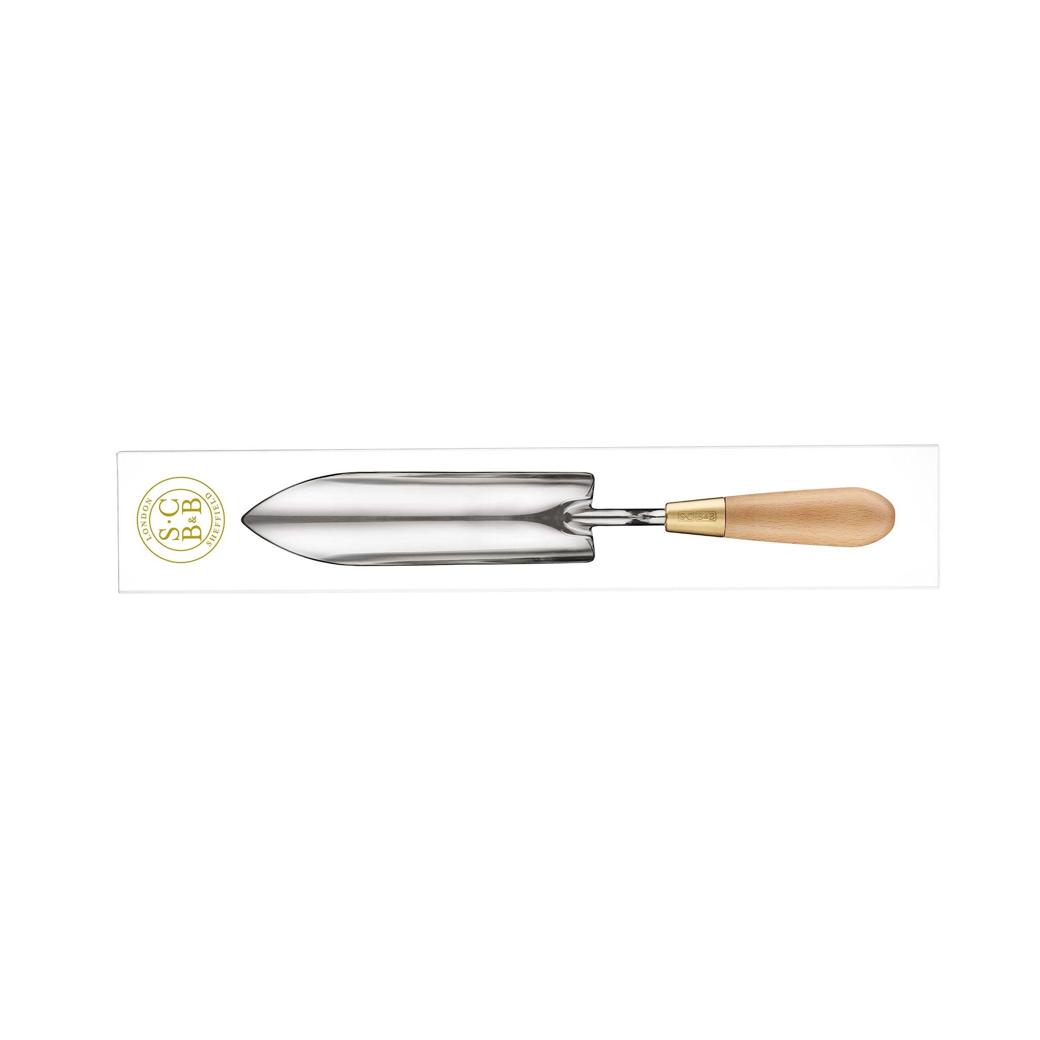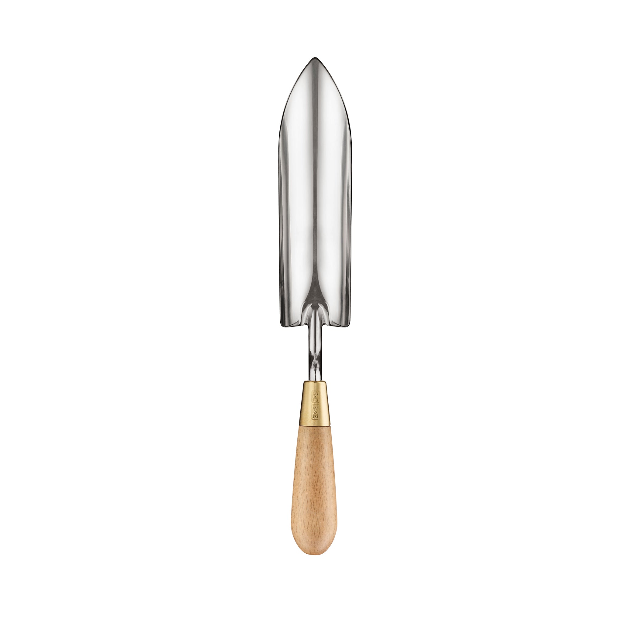 The mirror-polished stainless steel head glides effortlessly through soil, with minimal resistance. Naturally rust-resistant, it stays bright and beautiful through years of use. The FSC®-certified beechwood handle is smoothly contoured to sit comfortably in the hand, while the solid brass ferrule ensures a secure, lasting connection between handle and blade.