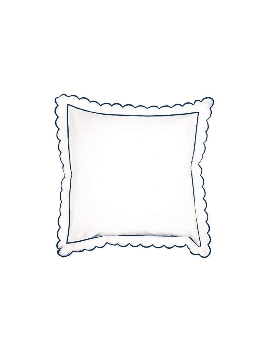 Made from pure cotton in classic, crisp white, this Square Pillowcase has understated elegance and is lovely to the touch, the navy-trim scalloped edge is a charming detail with a cloud-like feel.