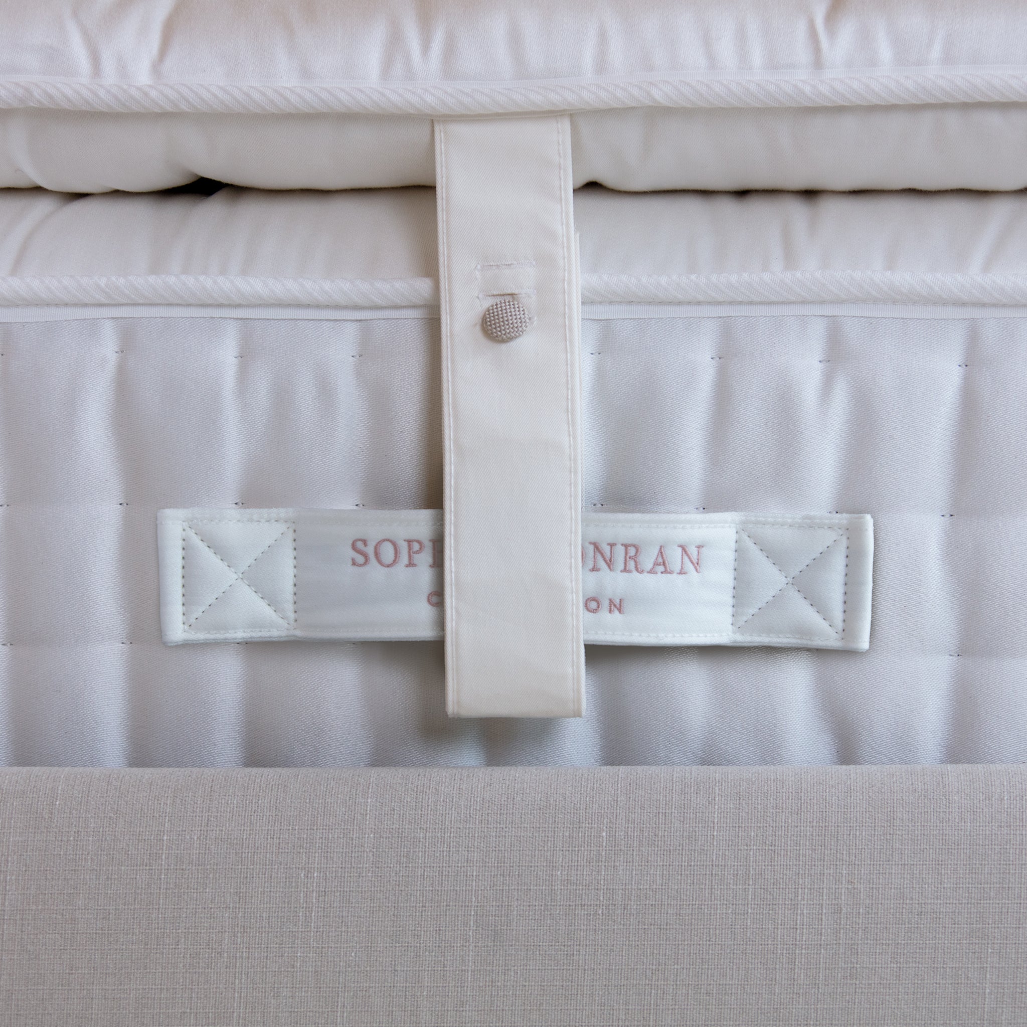 At its heart are 6000 individually wrapped pocket and micro springs, working in harmony to cradle your body and reduce motion transfer. Above this, a removable, double-sided topper adds a sumptuous layer of softness — filled with alpaca wool and mini springs for responsive comfort you can refresh with a simple flip. Natural British wool, sustainably sourced latex, and antibacterial bamboo fibres regulate temperature and wick away moisture, ensuring cool, comfortable sleep through every season.