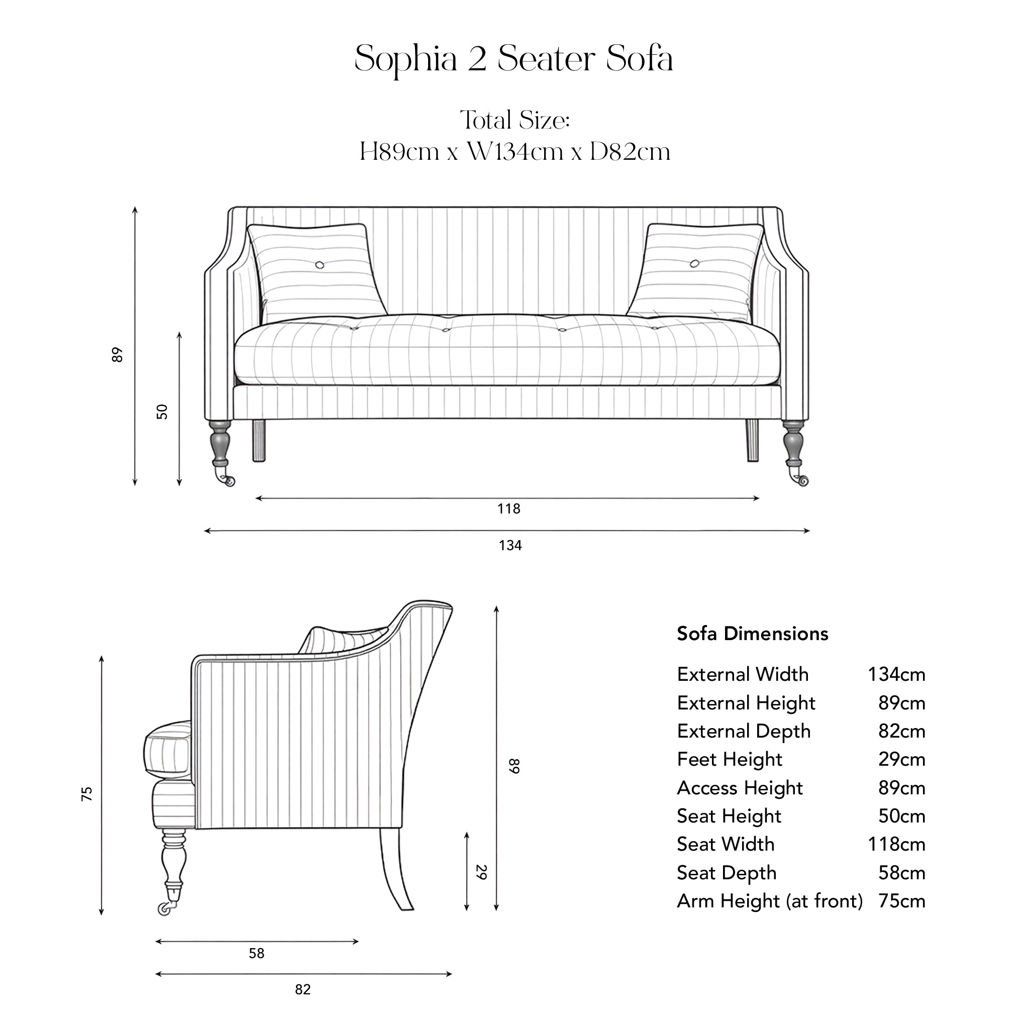 Sophia follows the classical silhouette it has been modelled after, with an elegant, composed presence that anchors a room.