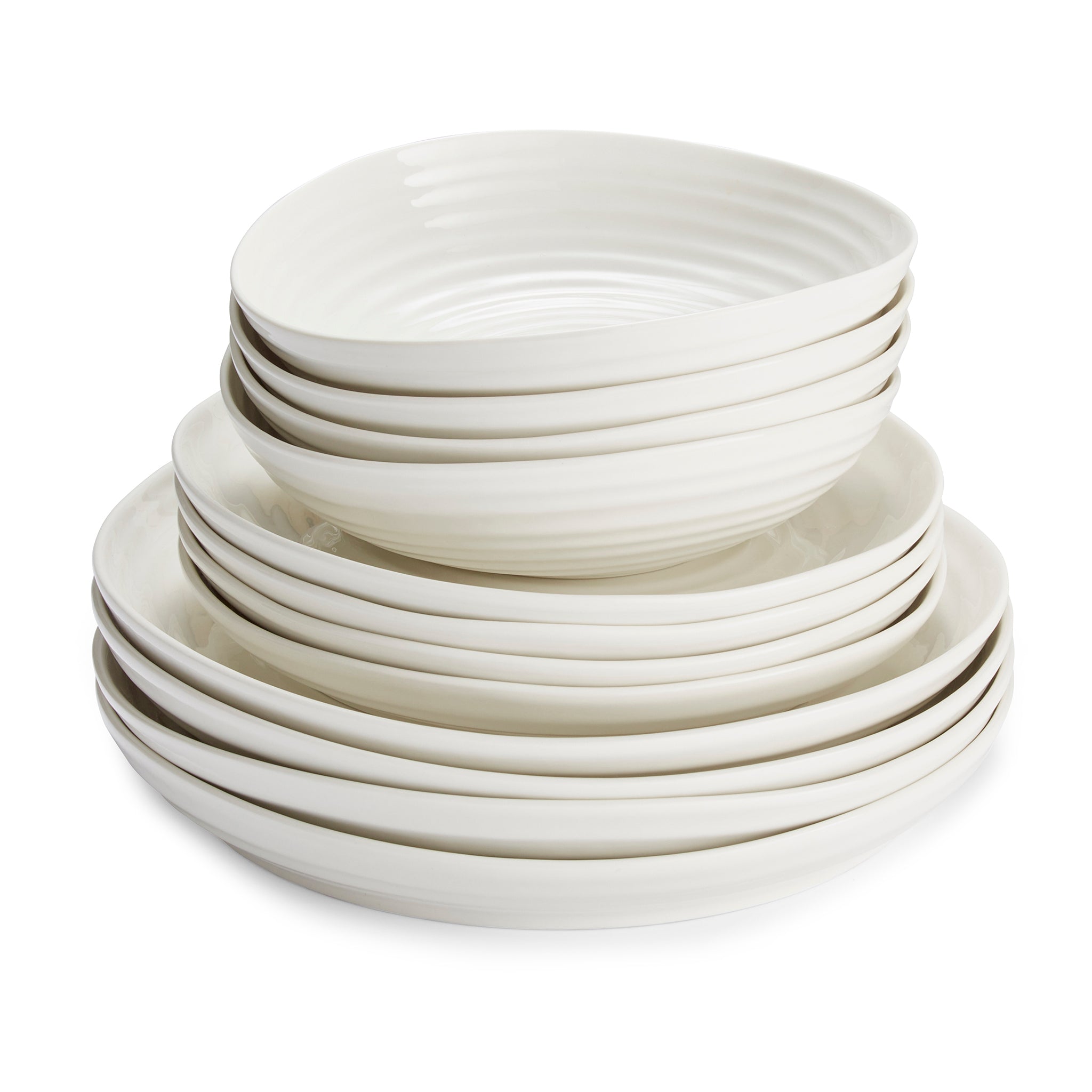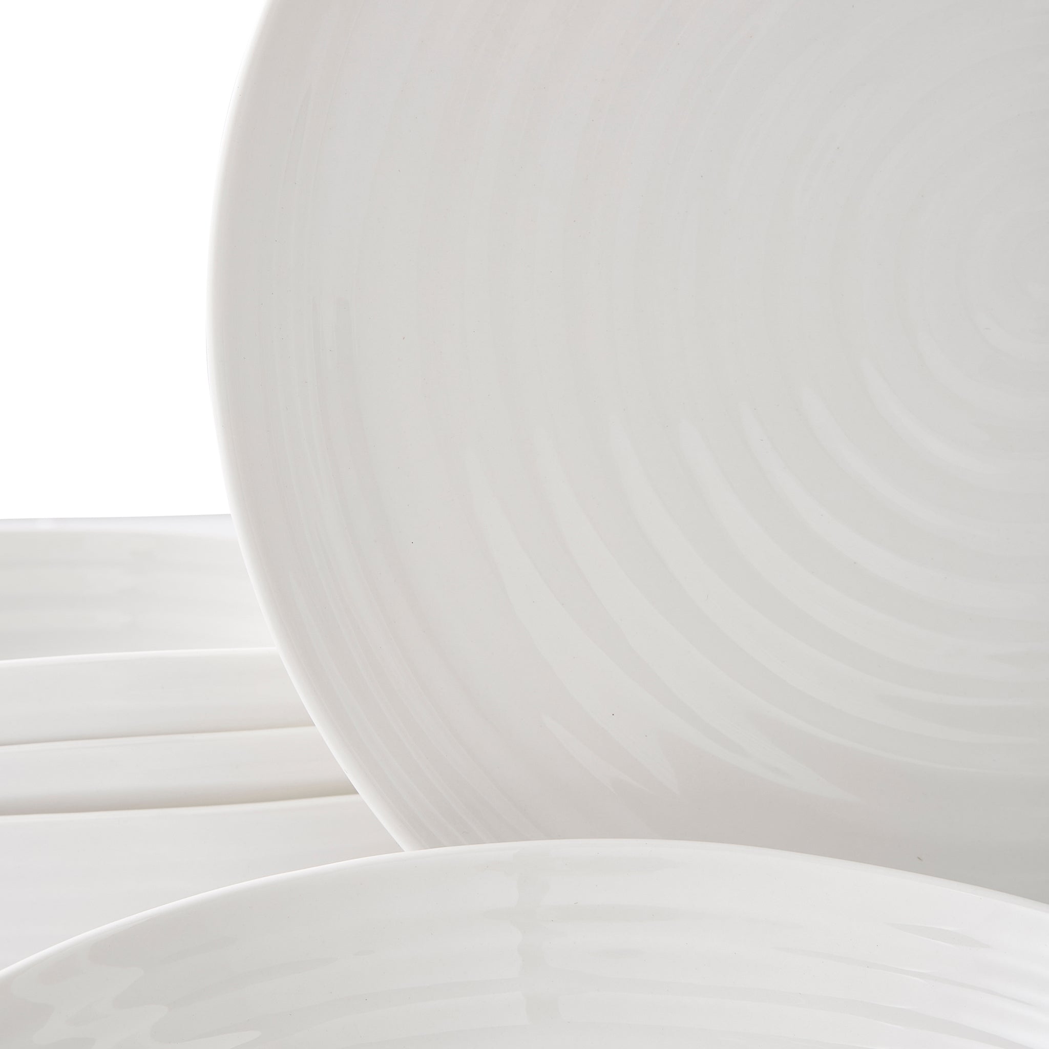 This set includes dinner plates, side plates and bowls for four, all in Sophie's signature hand-thrown style made of durable porcelain and finished with a clean, coupe edge that is ideal for relaxed, modern life. Styled in a coupe shape with a rimless, slightly curved edge, this elegant design is timeless, practical and perfect for every occasion.